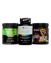 Kit Creatina Monohidratada 250g, Multivitamínico 120 caps e Pré-Treino Haze 300g - Growth Supplements